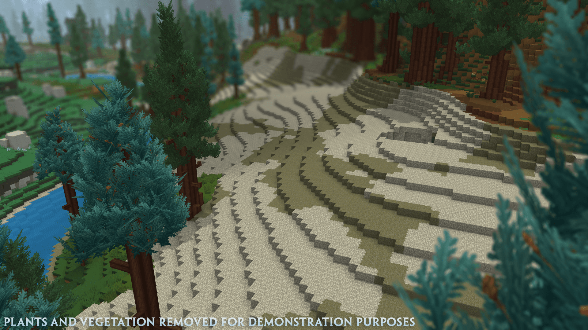 At this stage, we've got a landscape with plenty of blocks and a few major features like rivers, mountains and shorelines. The process of giving environments their personality occurs across multiple stages, each with its own procedural generation processes.