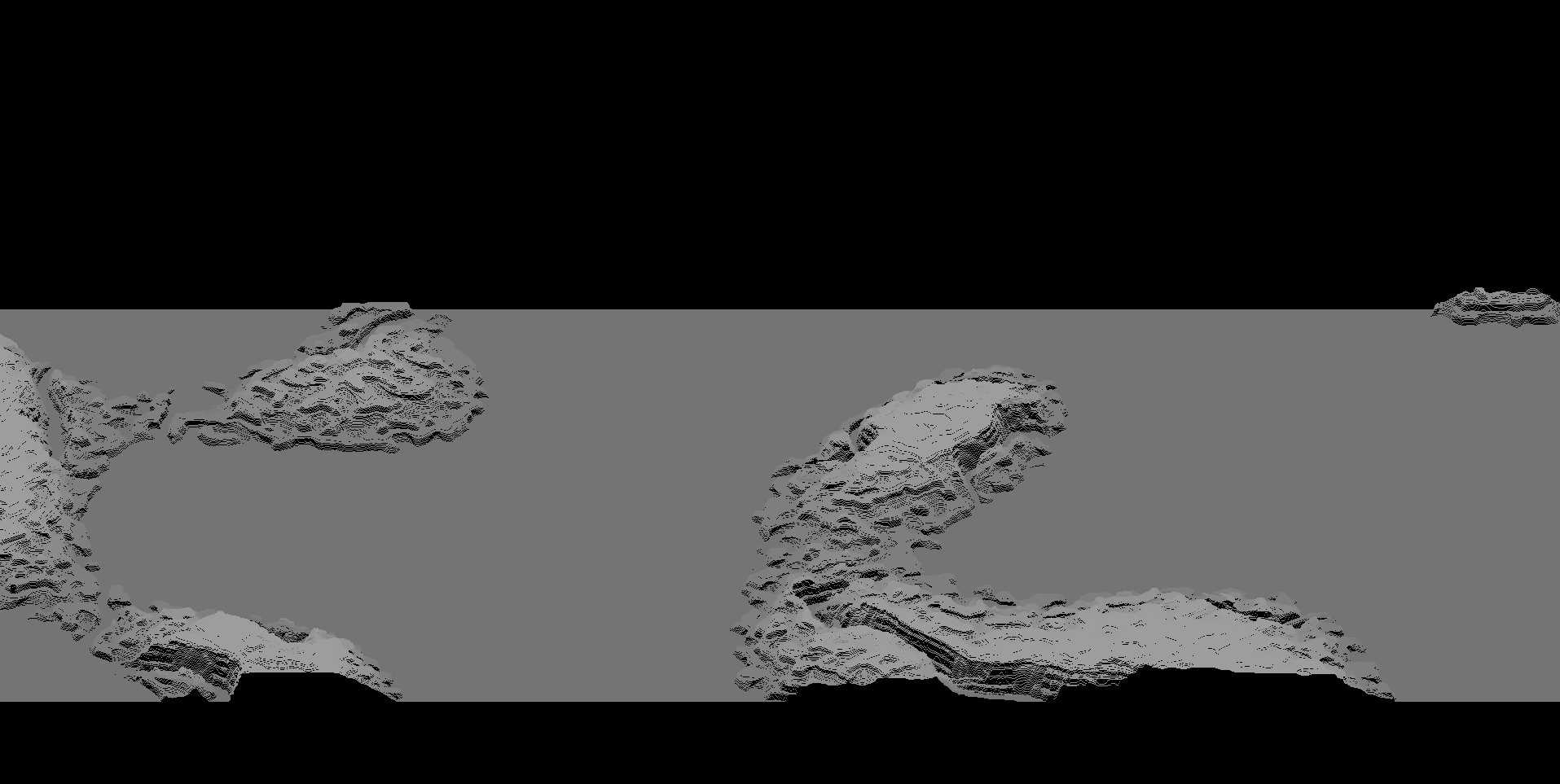This image is from a simple visualization tool and previews the result of combining noisemaps with another important feature of landscape generation - heightmap interpretation. In this case, the environments being simulated are the rocky plateaus of Zone 2.