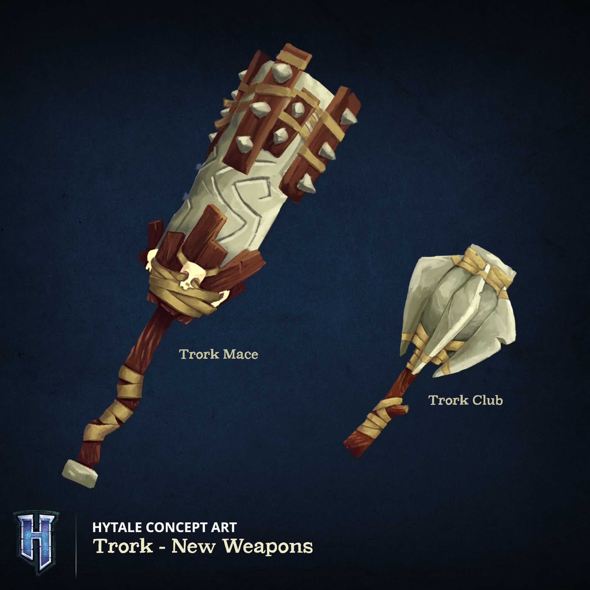 Please note: these pieces were produced as part of an application and, as such, do not necessarily mean that these creatures will make their way into the game. However, we hope you're as excited as we are about what Ted can bring to the team! Here's a peek at some of his earliest work for Hytale - a set of concepts for new Trork weaponry:
