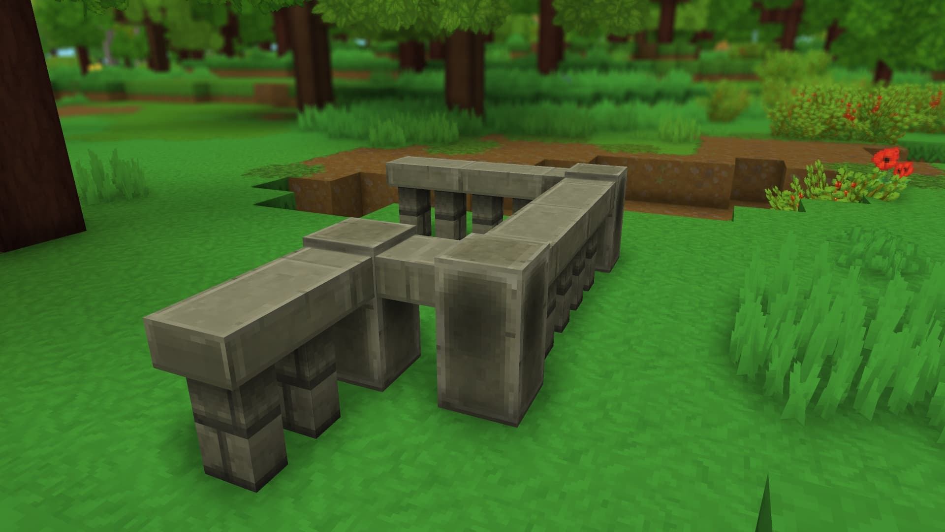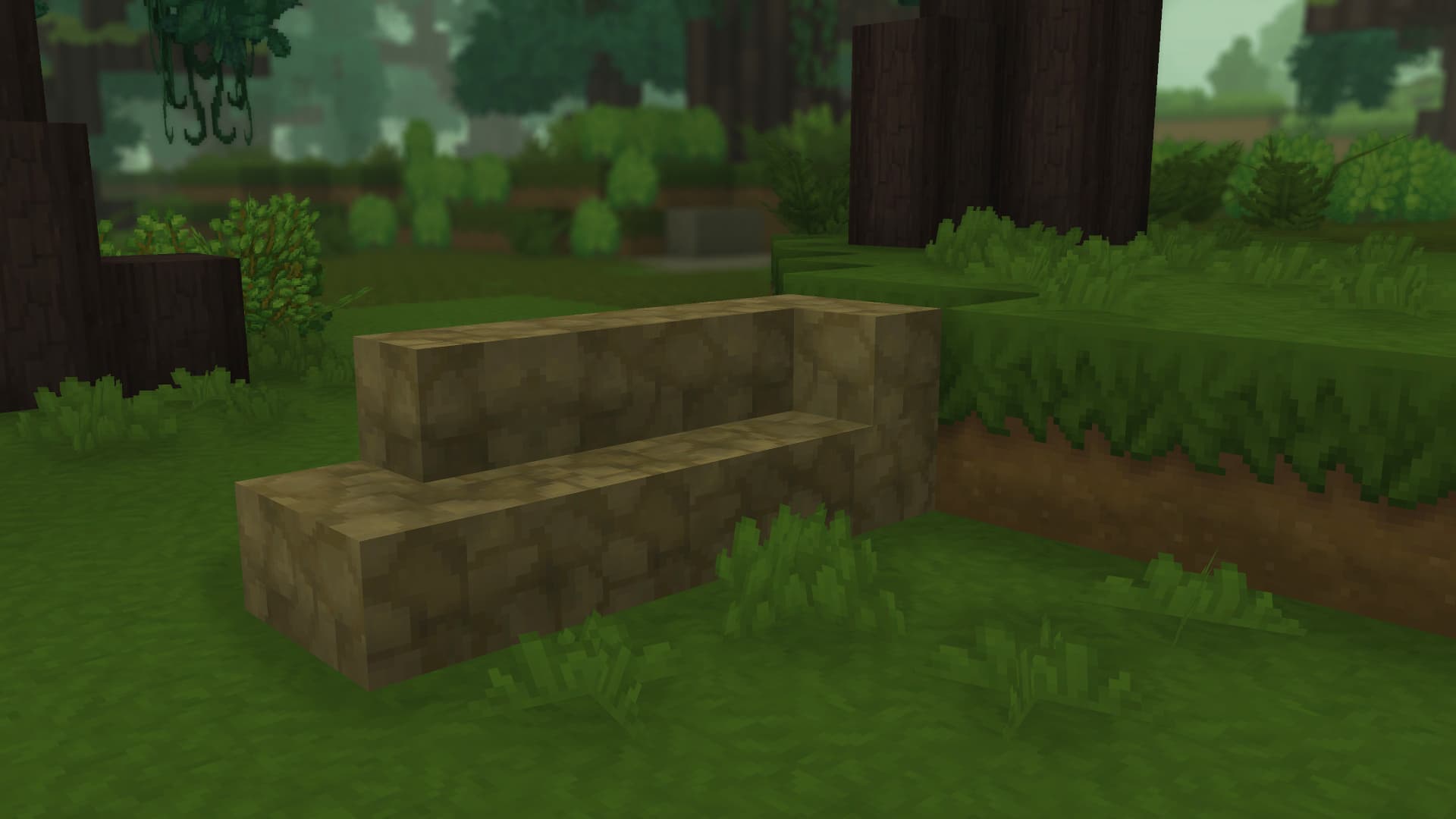 Above you can see an example of stair blocks. The most obvious use for these is building staircases, but they also allow you to create more subtle tapered edges than are possible with full blocks.