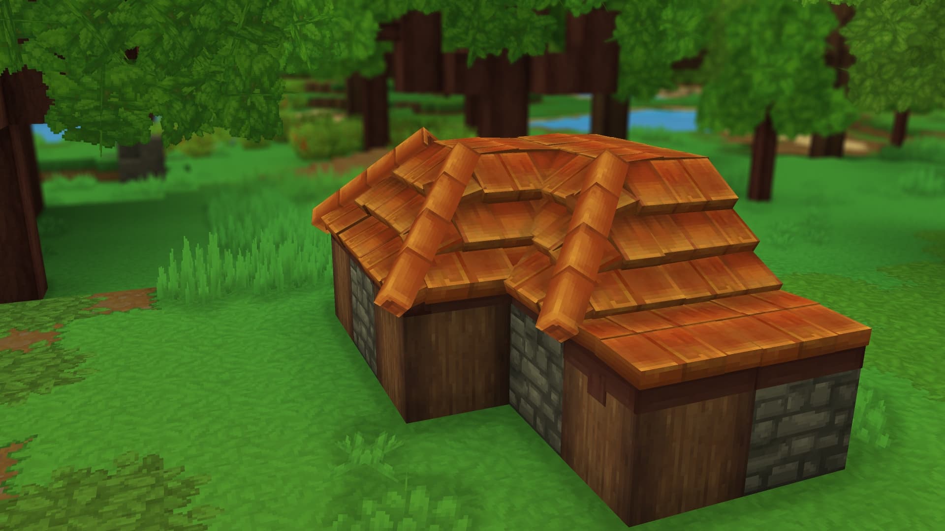 Roof blocks are another example of a sophisticated block variant that incorporates elements created in Hytale Model Maker. These sloping surfaces can be used to create detailed rooftops for your builds. The image above shows tiled roof elements, but other variants, like thatched roofing, are available too.