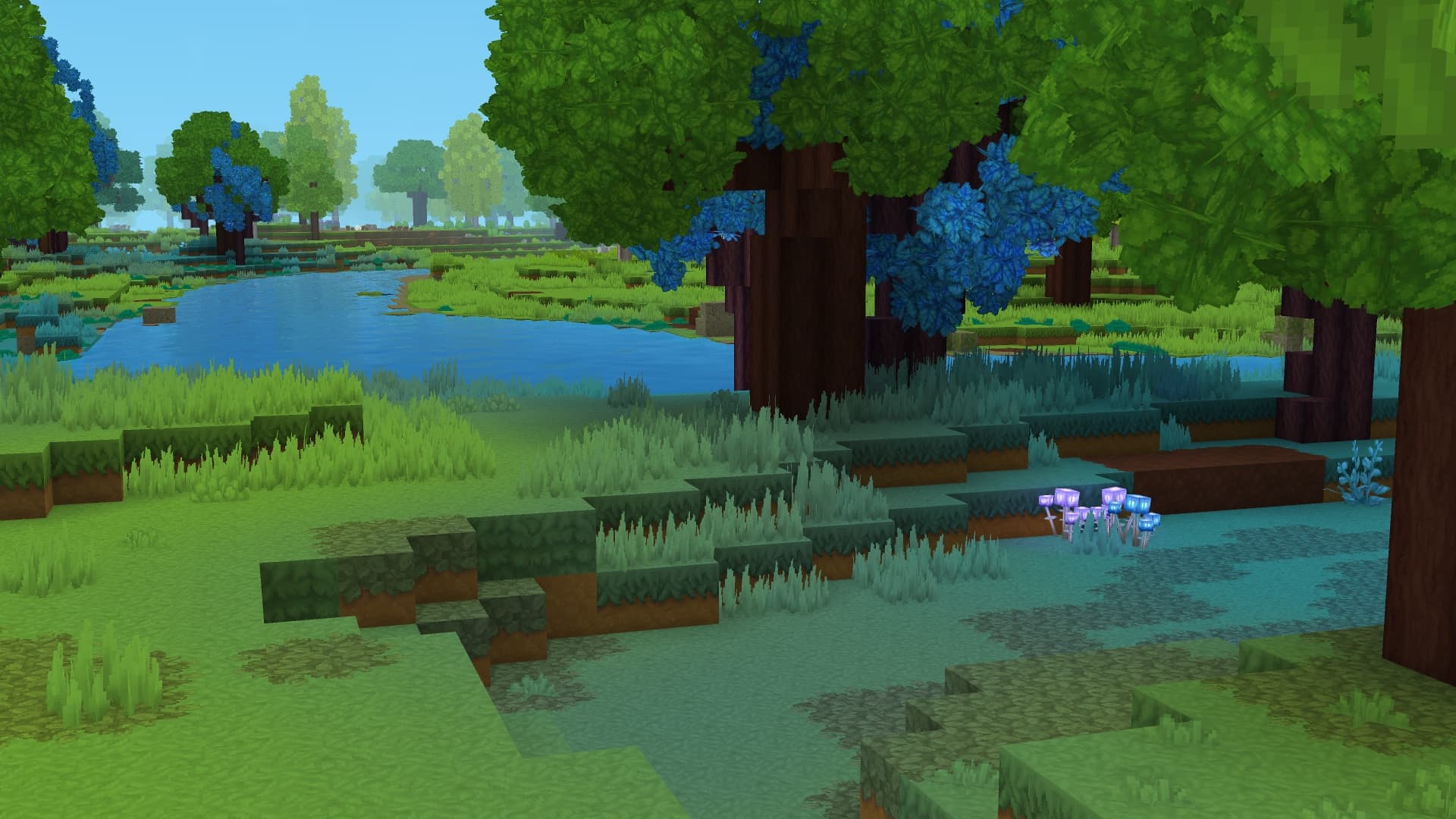 In the clip above you can see how long grass sways in the wind - and how it reacts as you move through it. This is a special effect that can be applied to a block to help environments feel more dynamic. “The effect you can see on grass or leaves is done on the shader level” says Bilou. “It’s a vertex displacement formula, based on the presence of a nearby entity.”