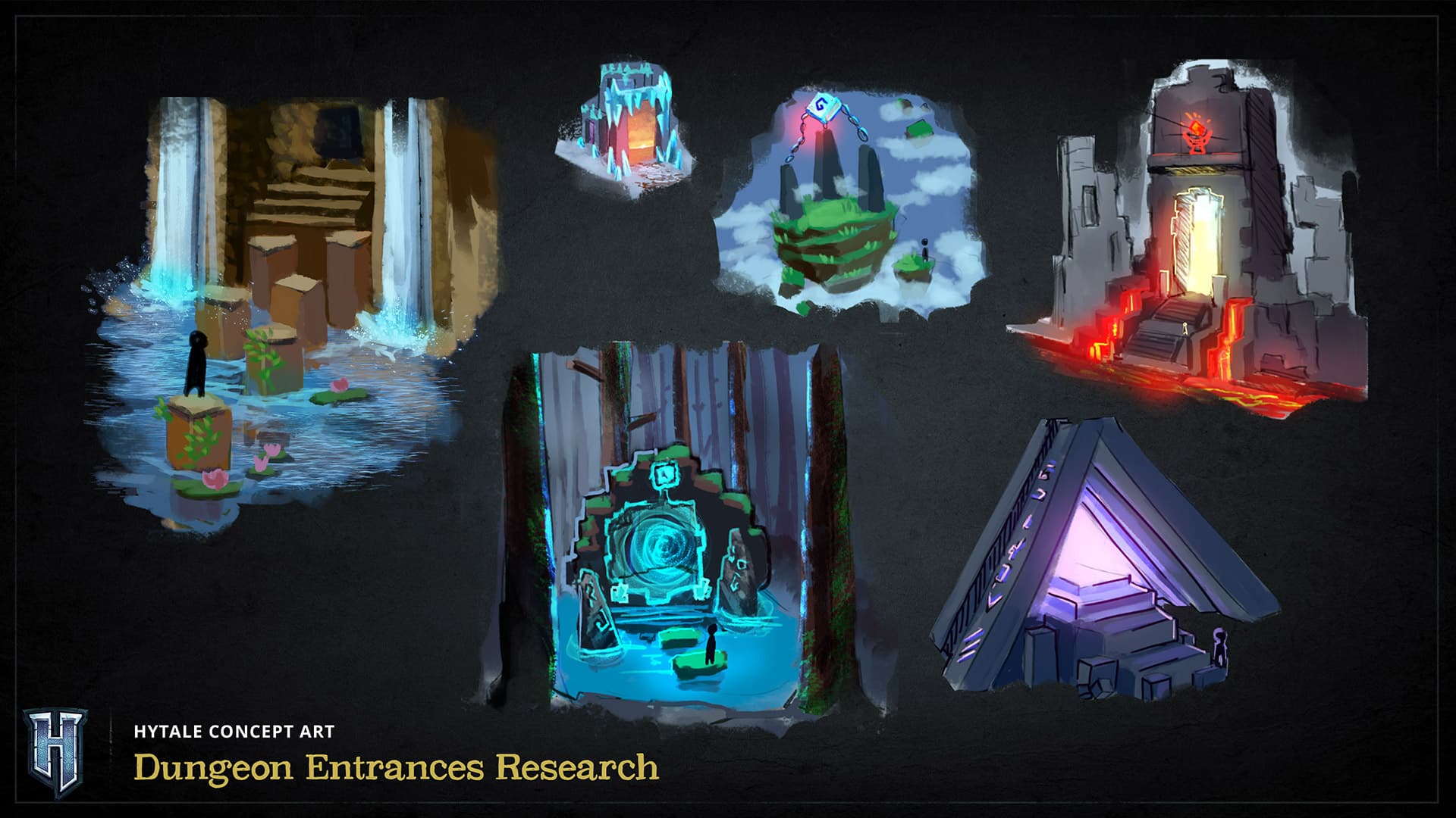 This piece of concept art is one of the first we produced when development of Hytale began. It depicts four of the zones that make up the planet of Orbis, which is where the bulk of Hytale's storyline takes place.