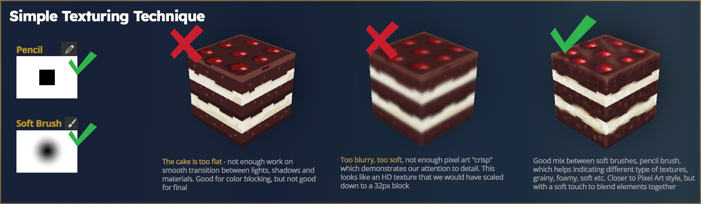 - Avoid pure white and pure black, as this will break lighting ingame, add too much contrast and ruin your values.