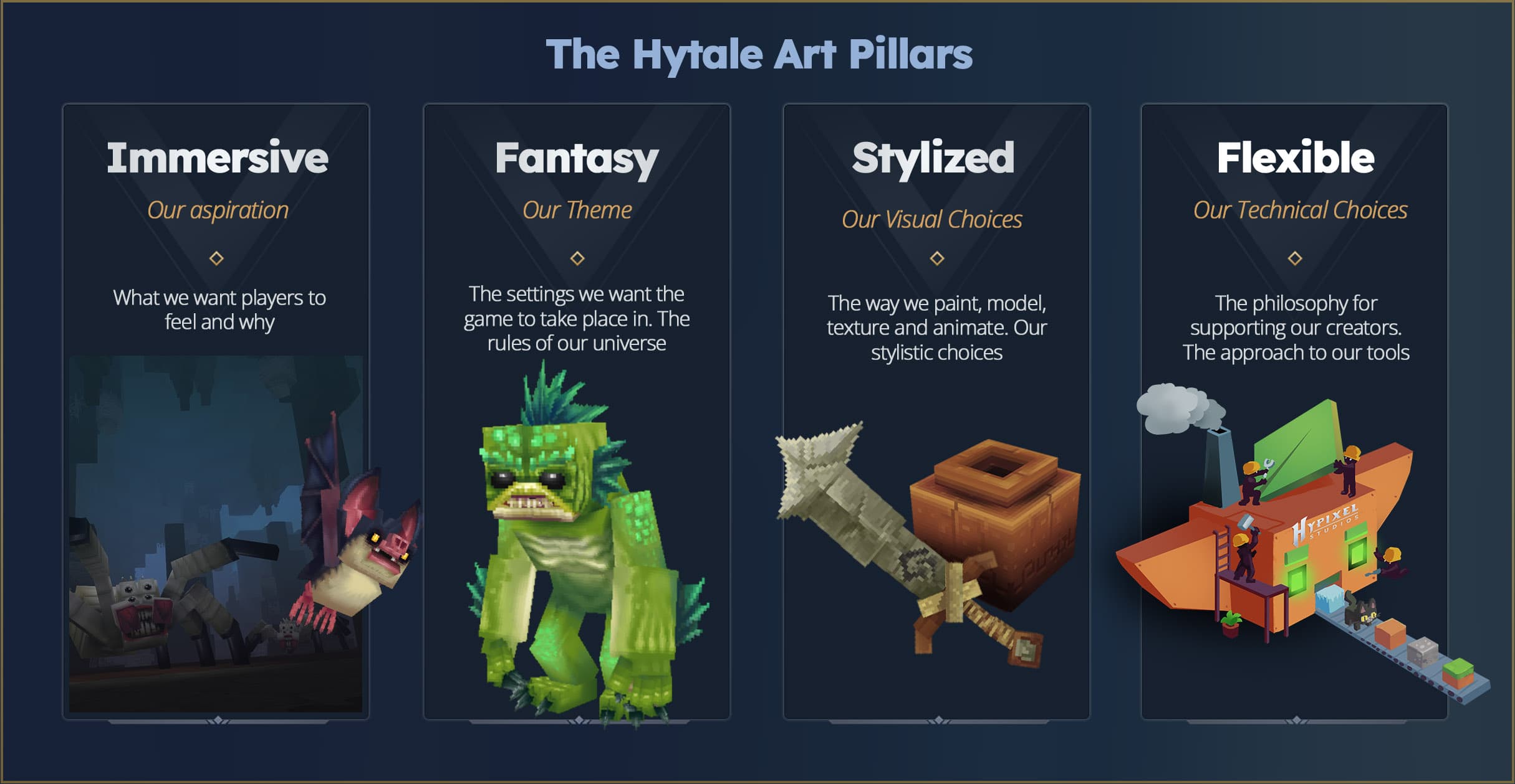 We have distilled the essence of Hytale's style into what we call the Art Pillars. Every time we create something new, we ask ourselves: Is this compatible with our core visual Pillars?